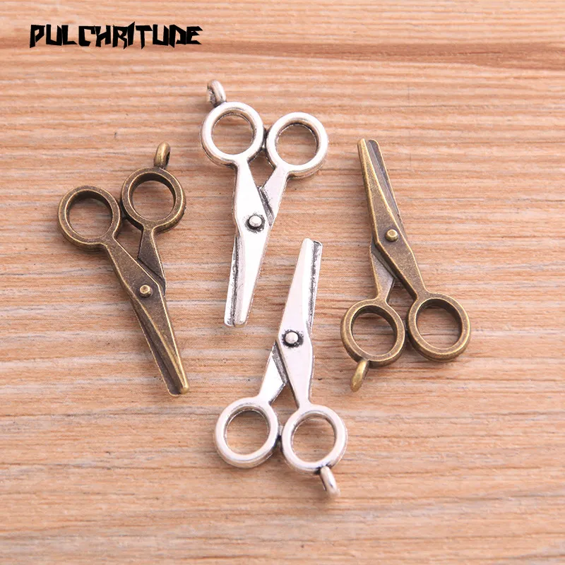 Name: 10 Uds. De colgantes de adorno con forma de tijeras hechas a mano, 2 colores, 16X33mm, decoración Vintage para joyería DIY