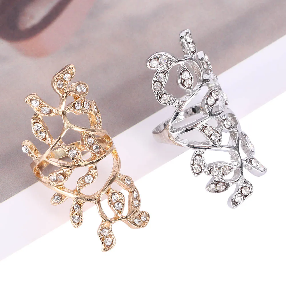 Name: Anillos de cristal bohemio para mujer, diseño elegante, chapado en oro y plata, cristal, rama larga, hojas, nudillo