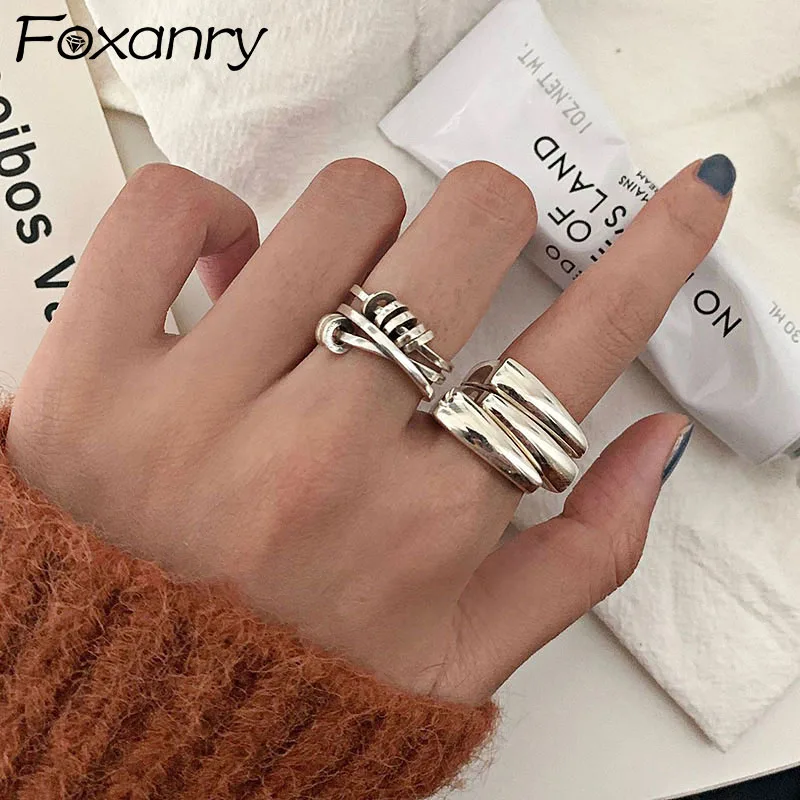 Name: Foxanry minimalista de Plata de Ley 925 Plata Lisa anillos para las mujeres nueva moda geométricos irregulares Punk fiesta Hiphop joyería regalos