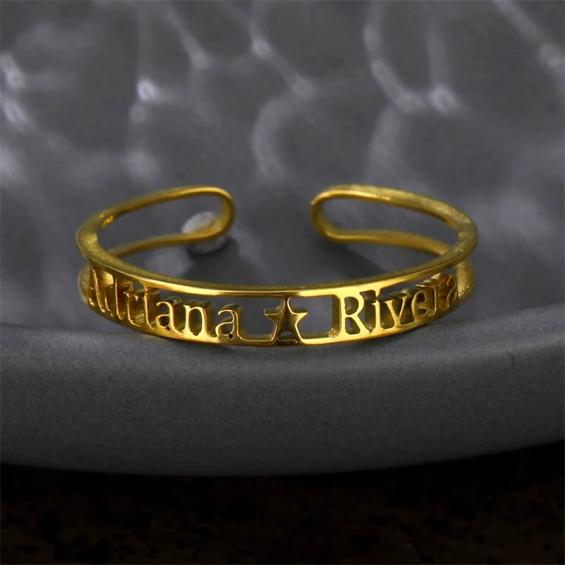 Name: Anillos de acero inoxidable personalizados con doble nombre para parejas, anillo ajustable con estrella personalizada, regalos de Año Nuevo y Navidad